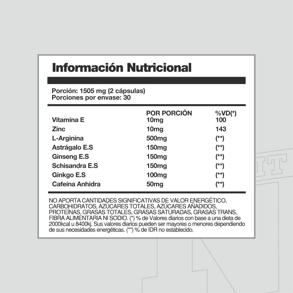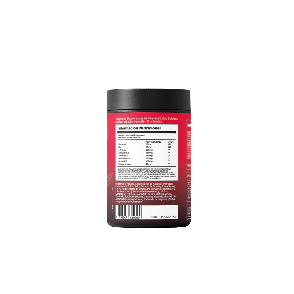 Su fórmula combina extractos vegetales adaptógenos, L-Arginina, cafeína, zinc y vitamina E, componentes que trabajan en sinergia para favorecer la circulación, mejorar la energía sexual y apoyar el equilibrio hormonal.