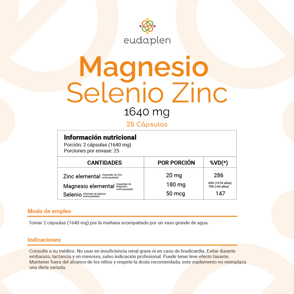 Este suplemento combina aspartato de magnesio, aspartato de zinc y glicinato de selenio, tres formas minerales de alta absorción que aseguran una máxima eficacia en el organismo. Diseñada para ofrecer soporte en múltiples funciones clave, esta fórmula potencia la energía diaria, la salud muscular, el sistema inmunológico y la protección celular frente al estrés oxidativo.